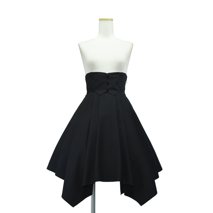 特徴的なハンカチーフヘムのスカート部分は、深めのタックによりボリュームのある仕上がり。