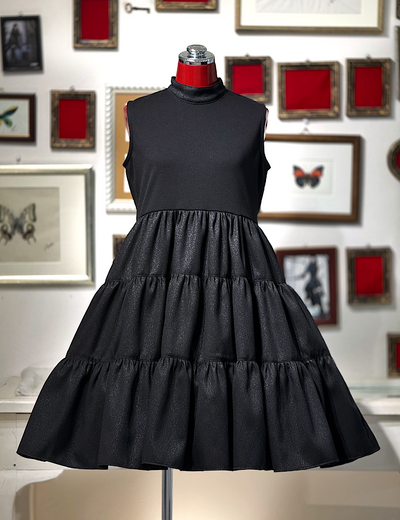 浅くデザインされたハイネックは首元をスッキリと美しくみせます
