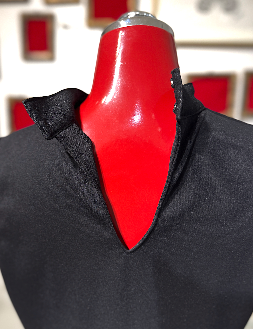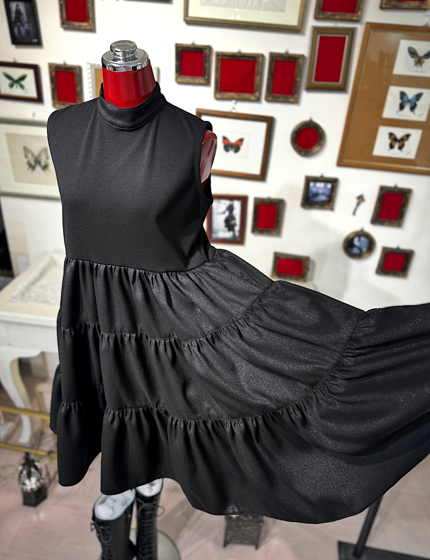 首元とスカートには動く毎に控えめな輝きを感じる生地を使用してします