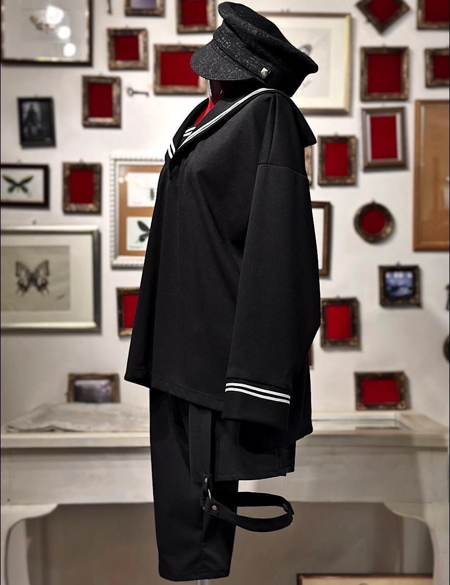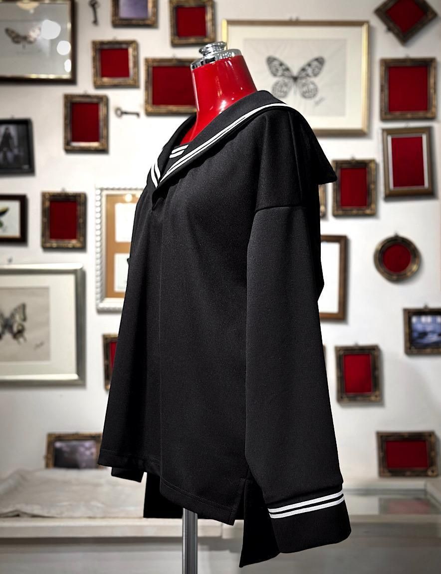 厚めのストレッチ生地を用いたセーラーデザインのカットソーです