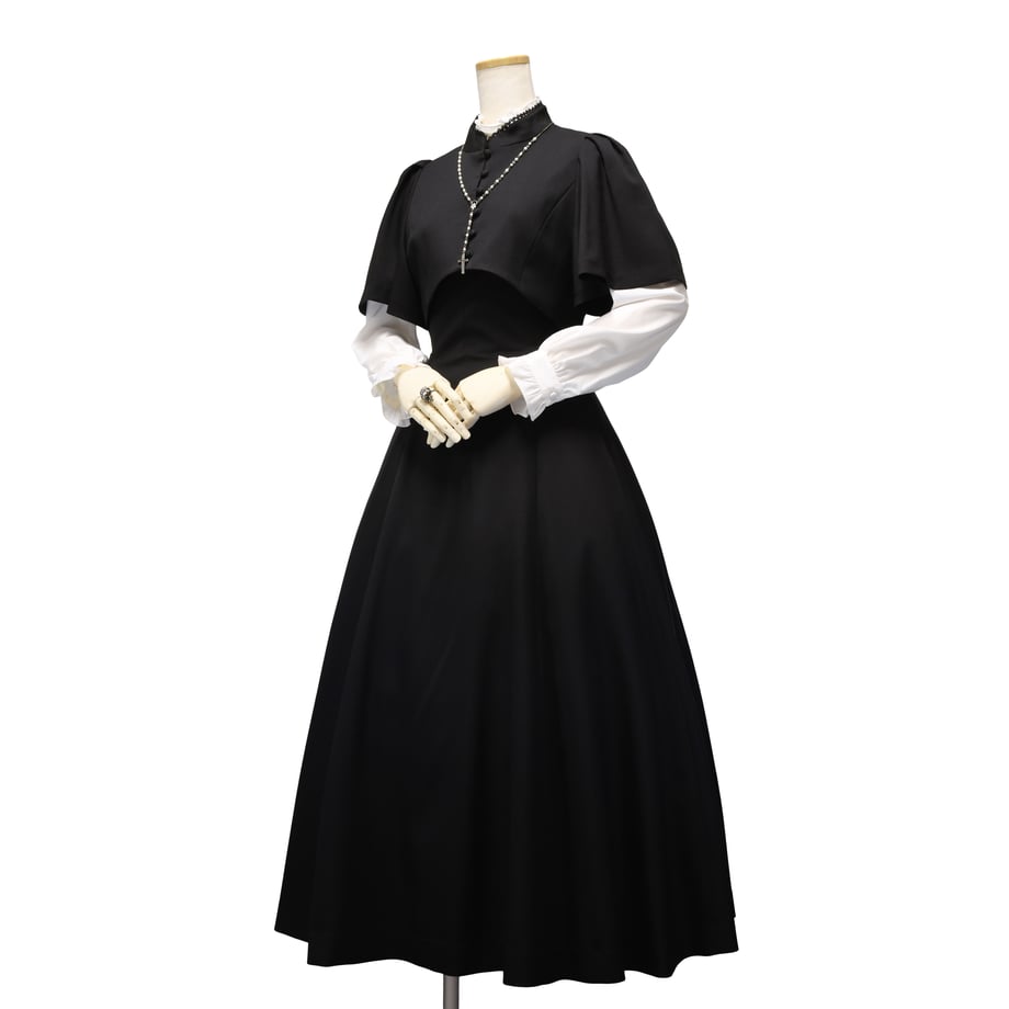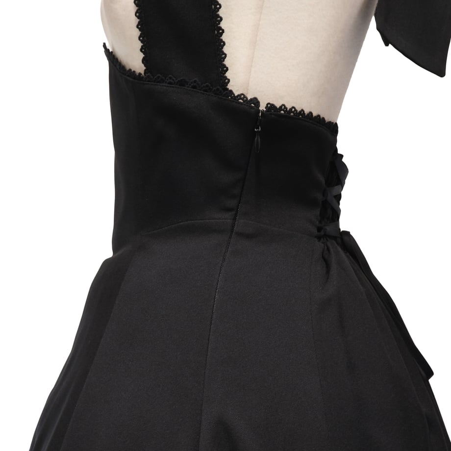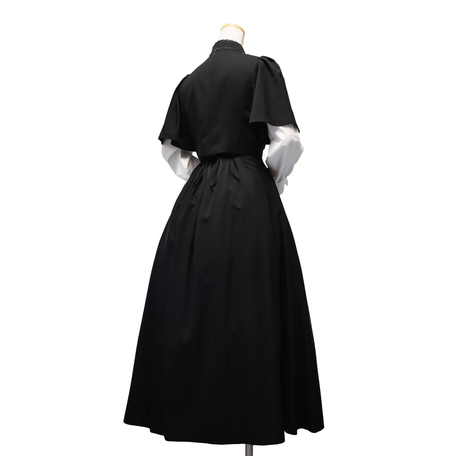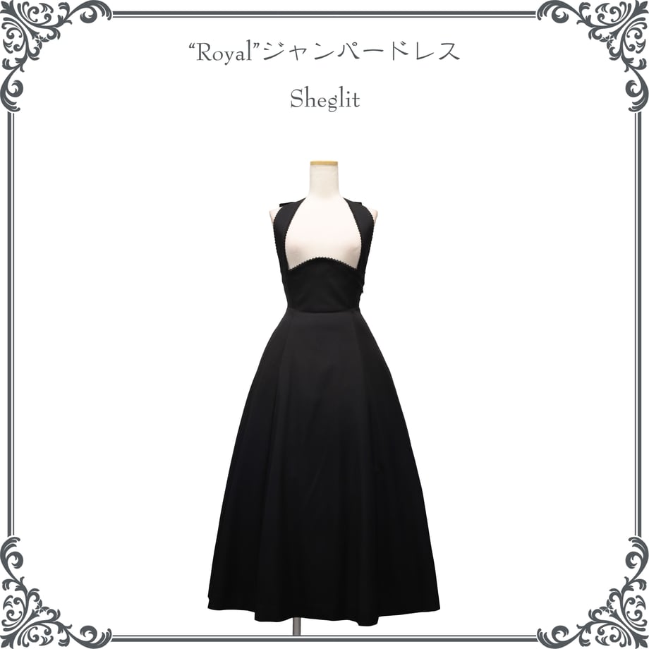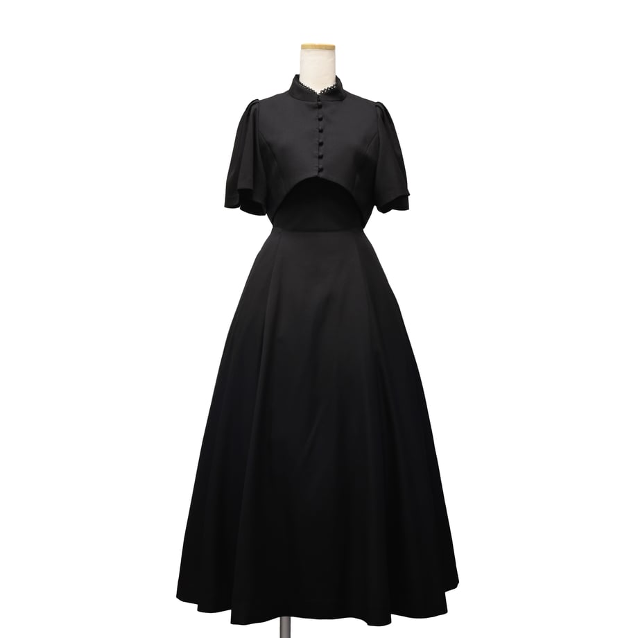 Royal ジャガードジャンパードレスと同型で仕立てた、無地ブラックタイプ。