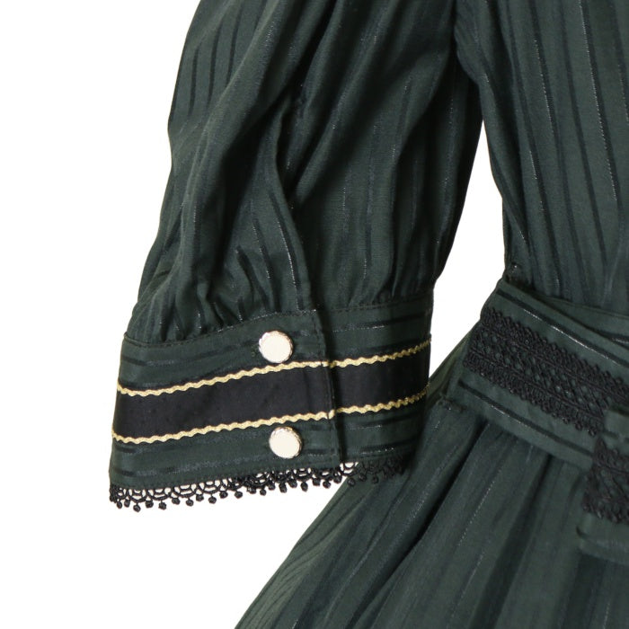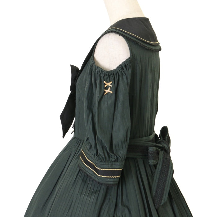 ポケット×1 オフショルダー/半袖の2Way仕様 胸元リボンブローチ・ウエストリボン取り外し可能 |