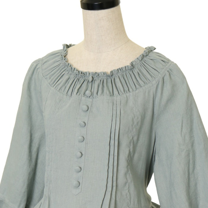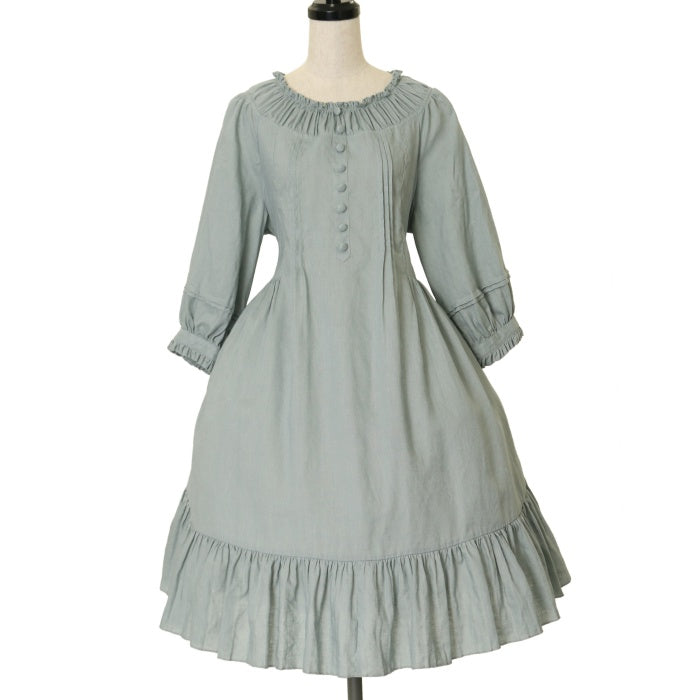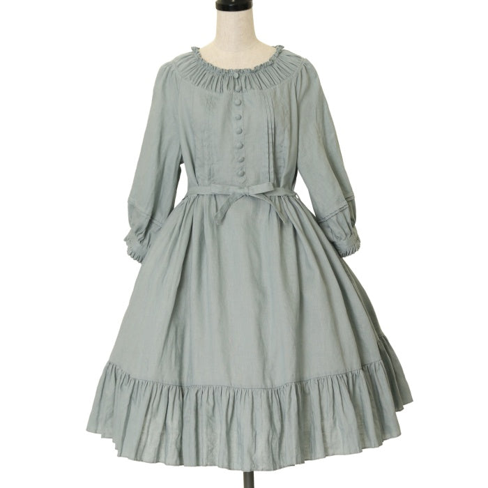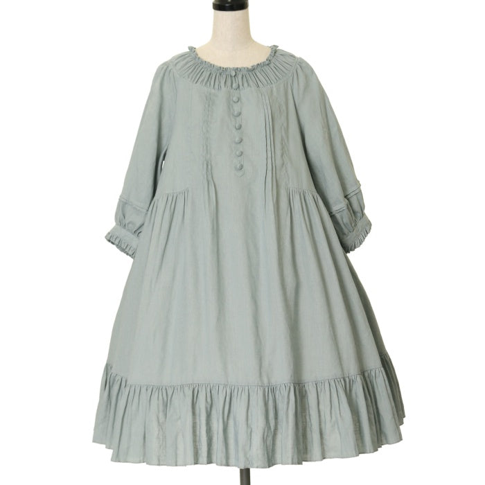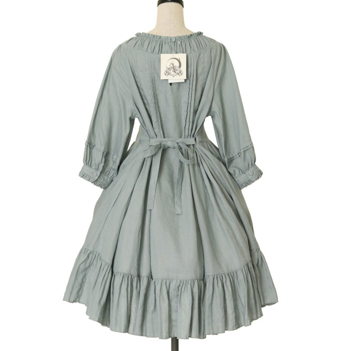 【USED】【XLサイズ】「八十日間世界一周」ビショップスリーブAラインワンピース【ミディアム丈】