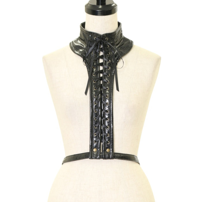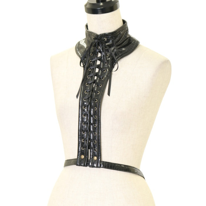 【USED】フェイクレザーロングネックコルセット(エンボス)
