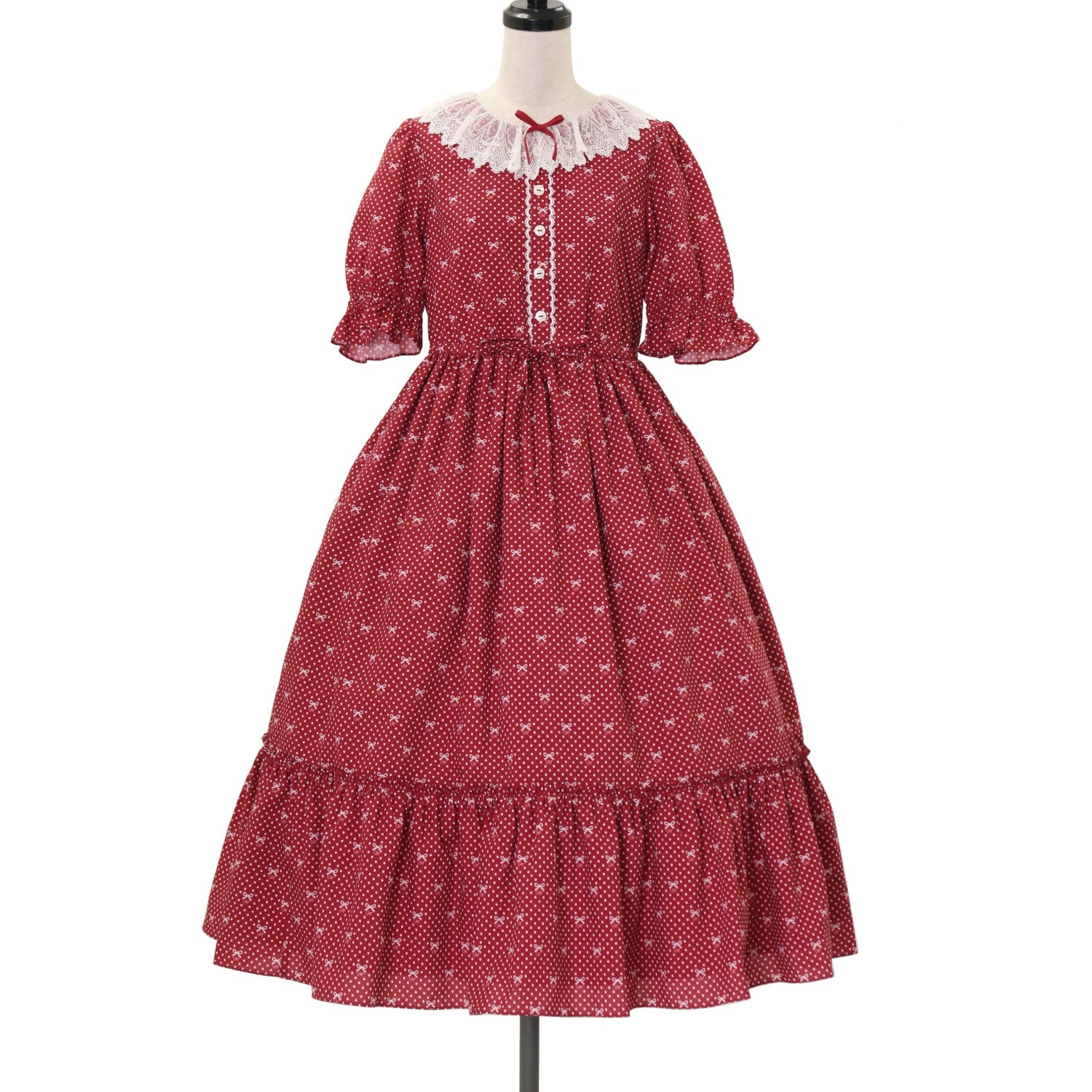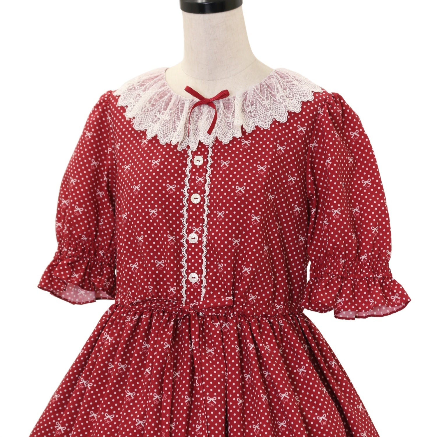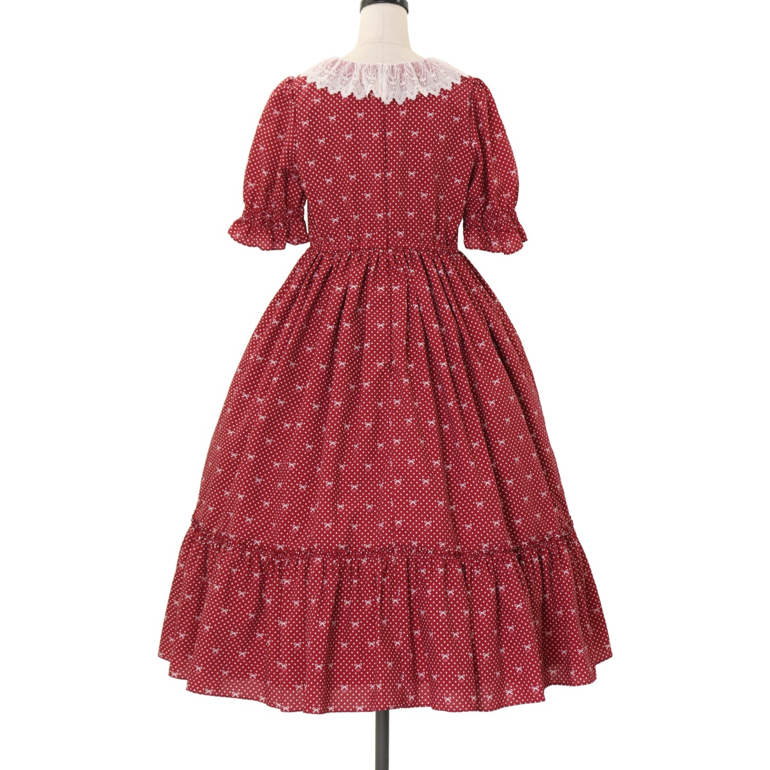 【USED】【Mサイズ】Little dot Ribbonレース襟ワンピース