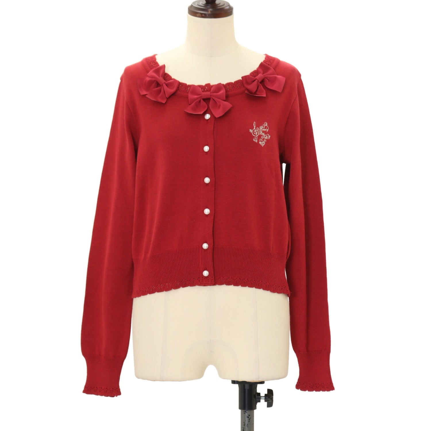 【USED】【Mサイズ】トリプルリボン コットンニットカーディガン