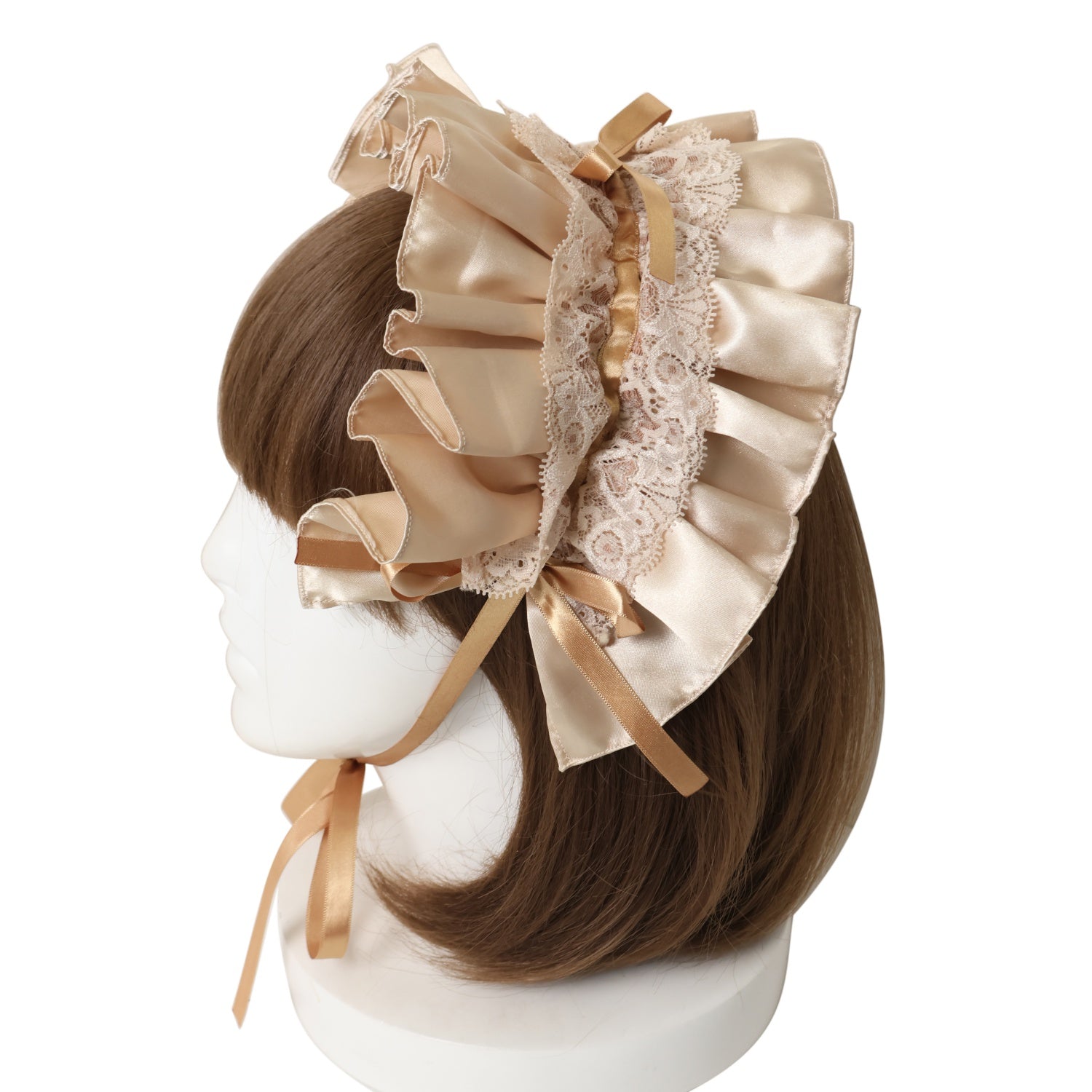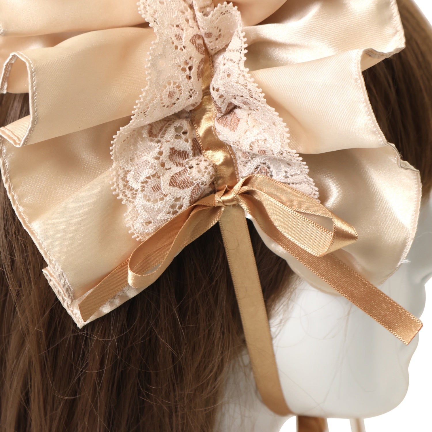 【USED】ボリュームフリル&レースヘッドドレス:ベージュ×クリームサテン