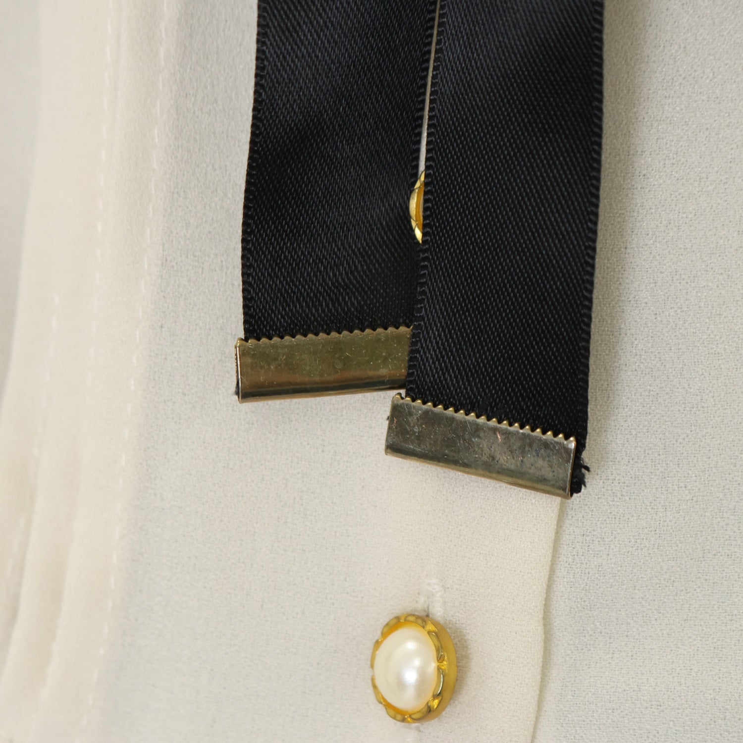 产品状态 | 使用感あり 右襟ぐりに小さな汚れ シワ リボン先端金具に錆 ヨーク歪み |