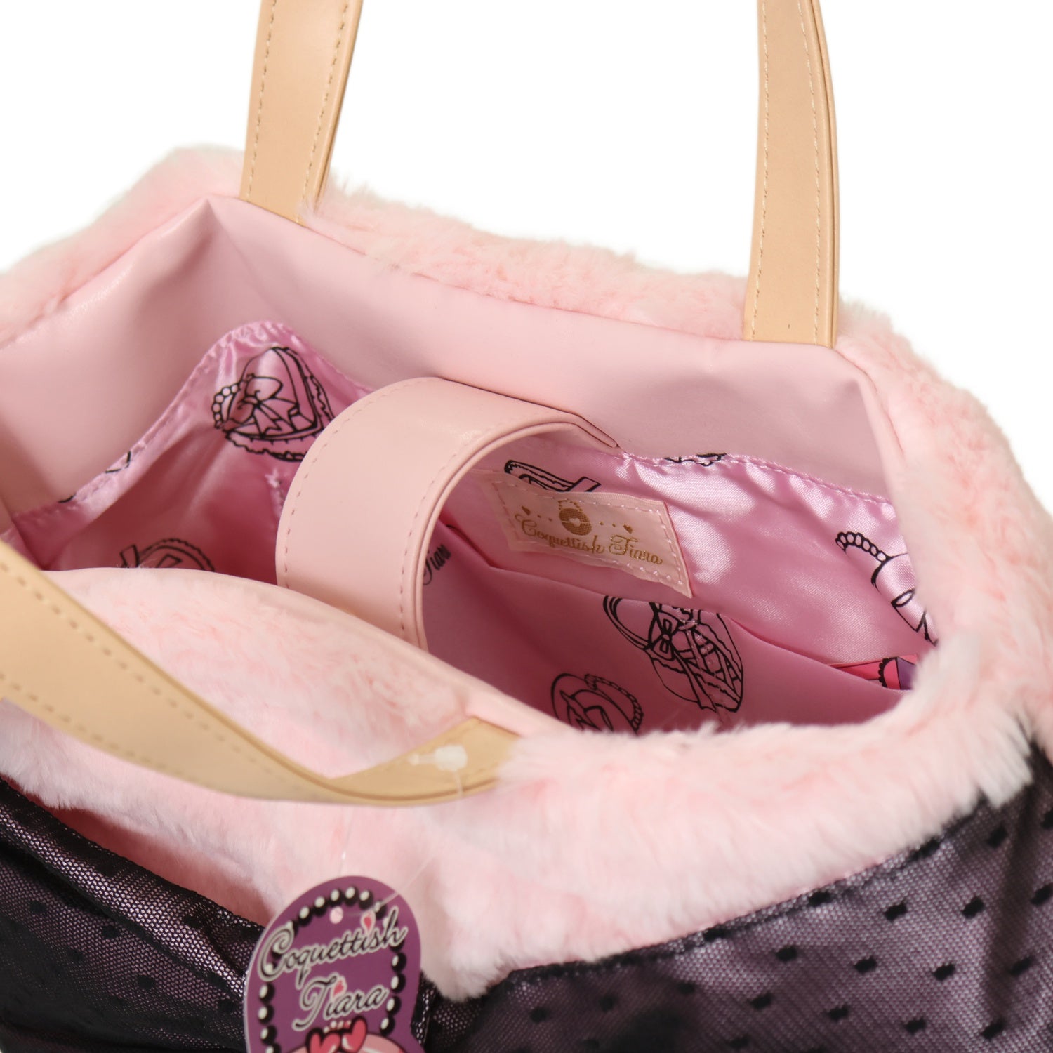 【USED】マイクロファー×ドットBIGリボンふわふわトートバッグ