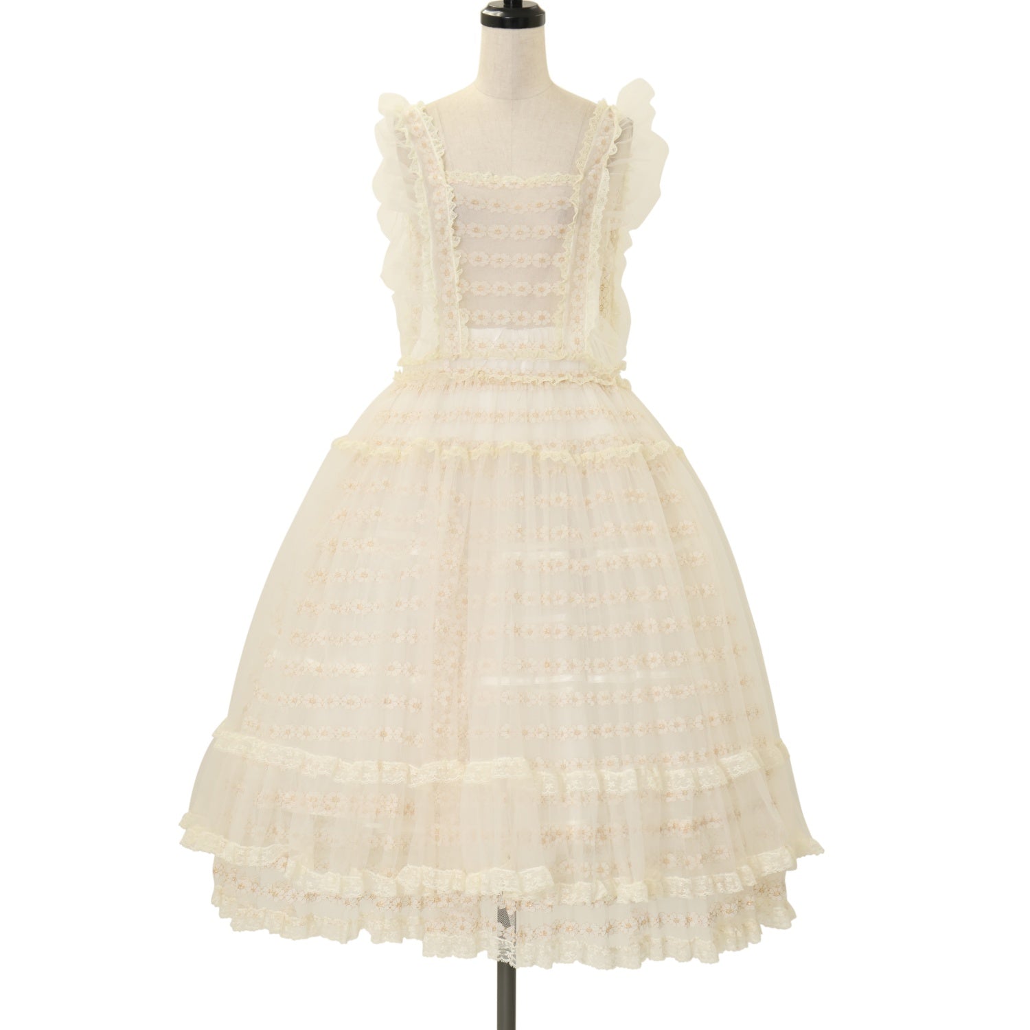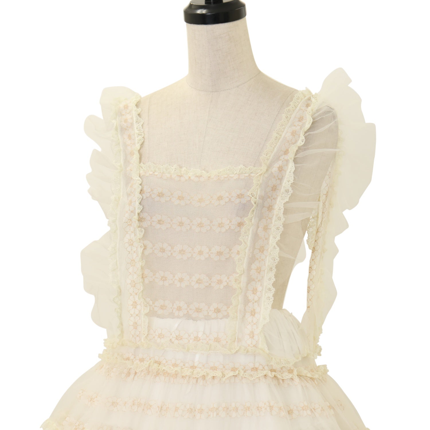 【USED】【Mサイズ】チュールレース金糸フラワーオーバースカート