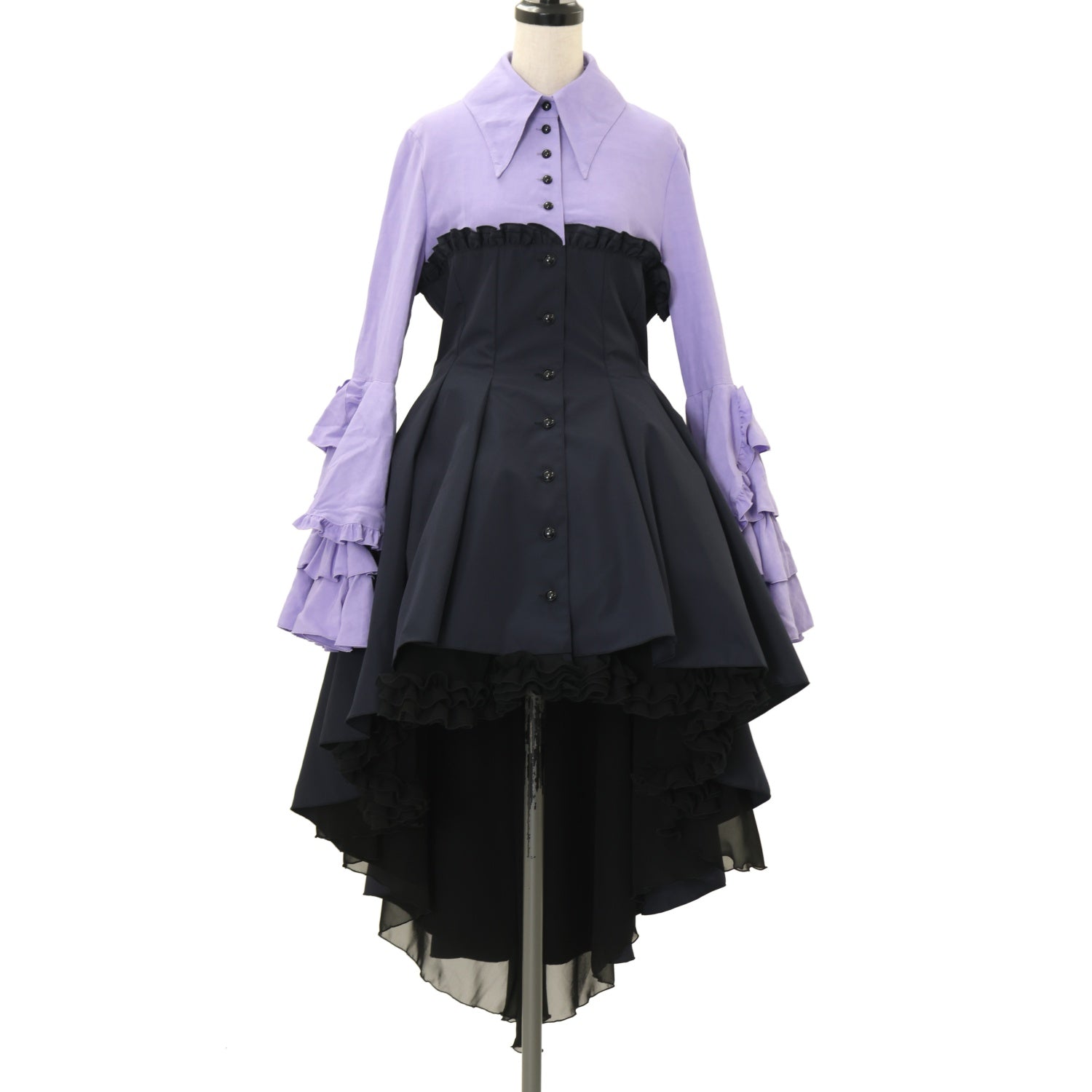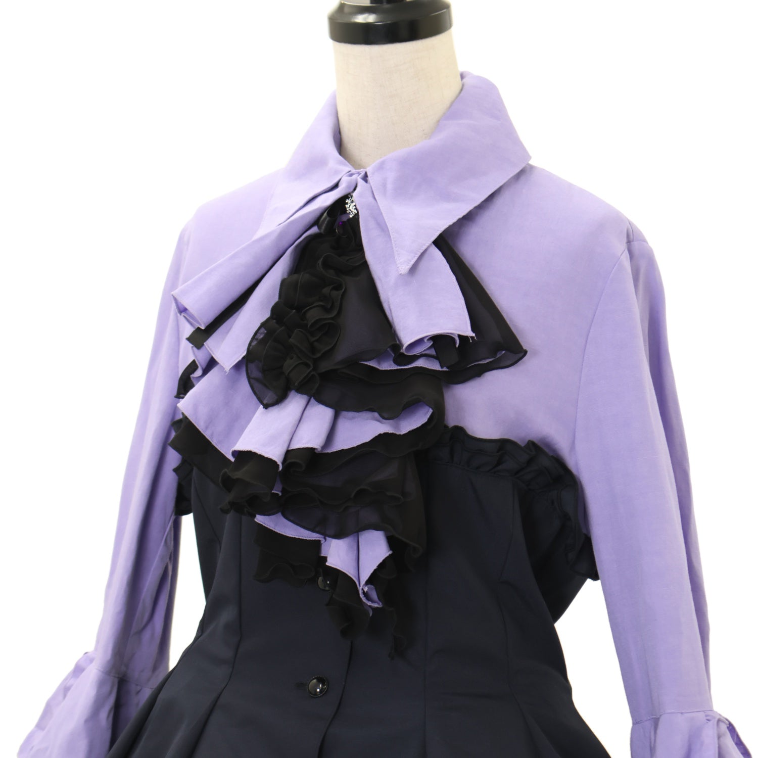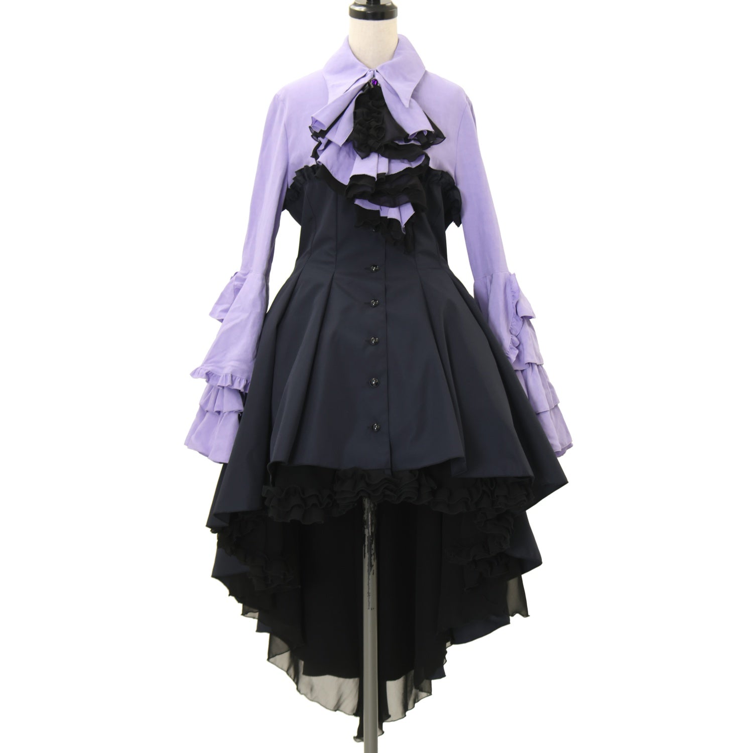 【USED】ドレープタイ付きゴシックエレガンスブラウスワンピース:紫×黒