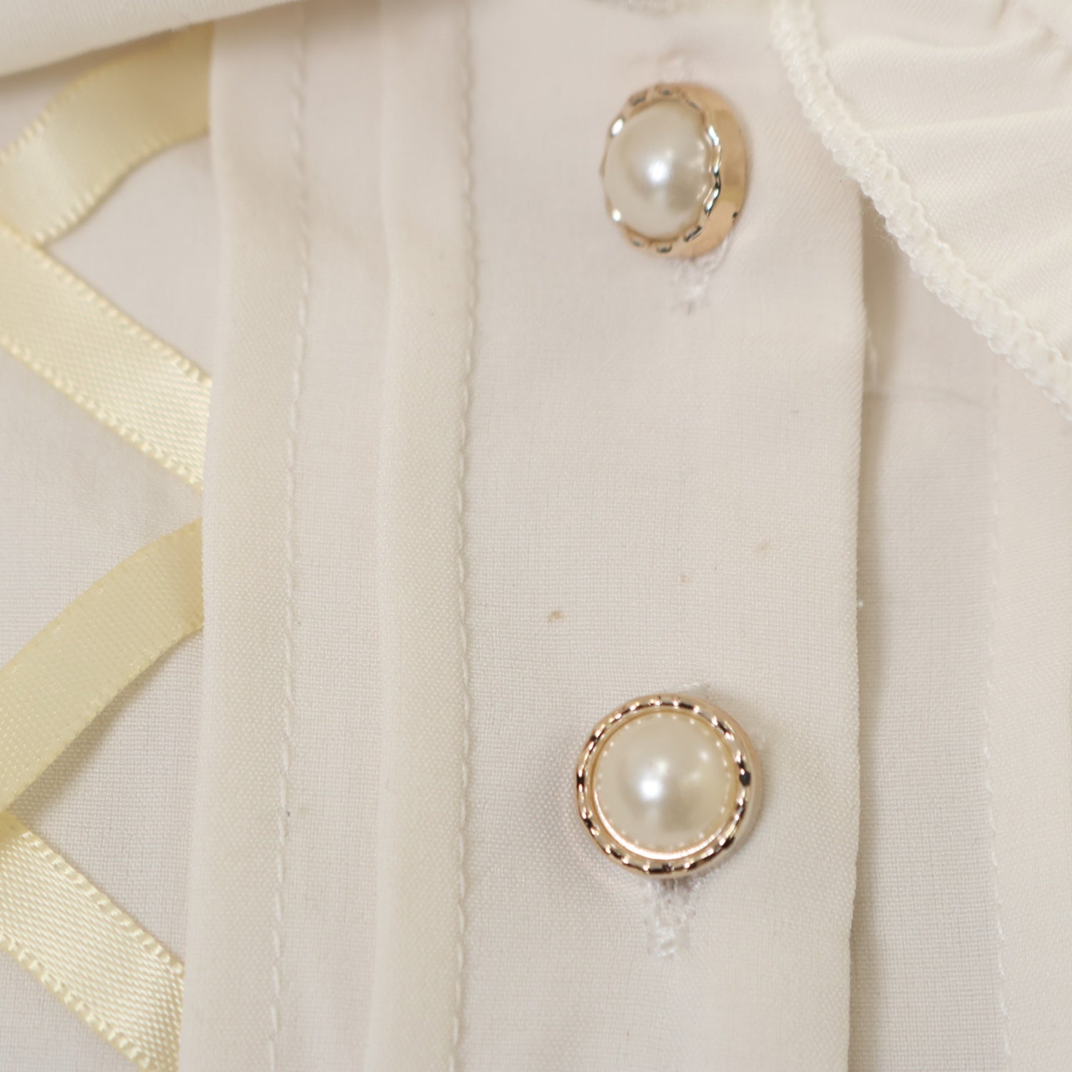 | 产品状态 | 使用感あり 胸元リボンブローチ欠品 シワ 胸元付近に汚れ 毛玉 ボタンホール周辺に糸つれ |