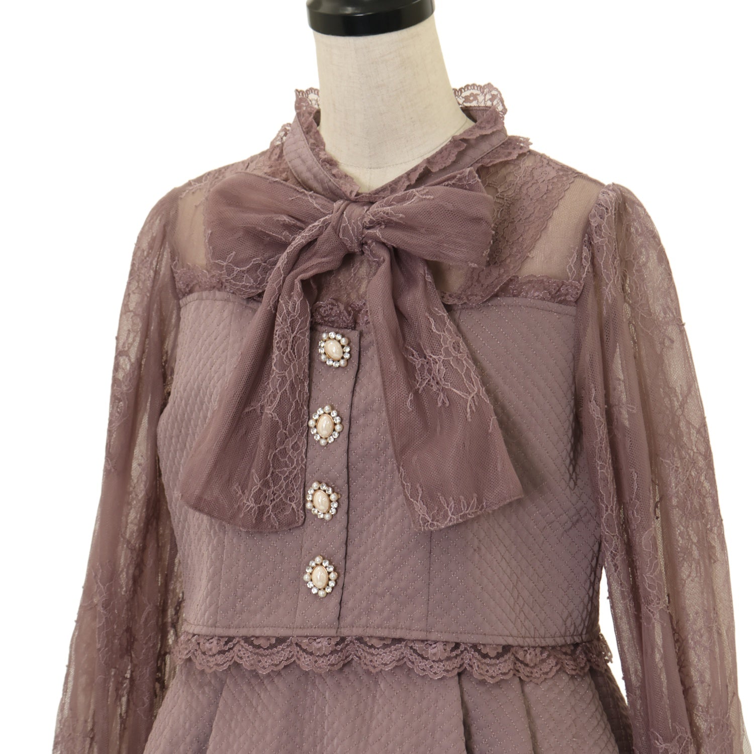 【USED】レーススリーブキルティングワンピース