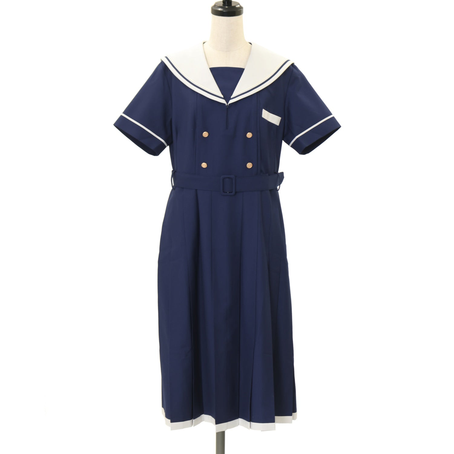 【USED】【胡桃木/Lサイズ】セーラープリーツワンピース