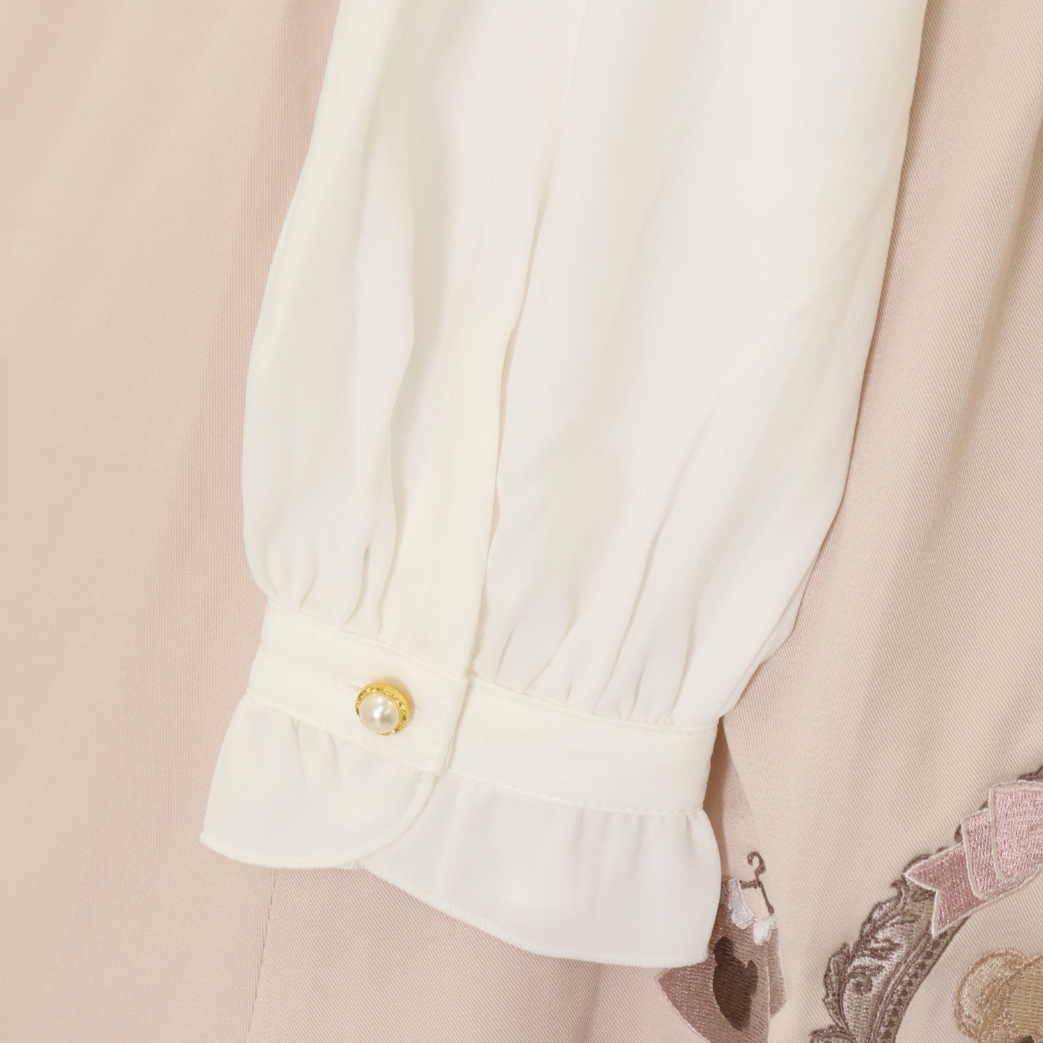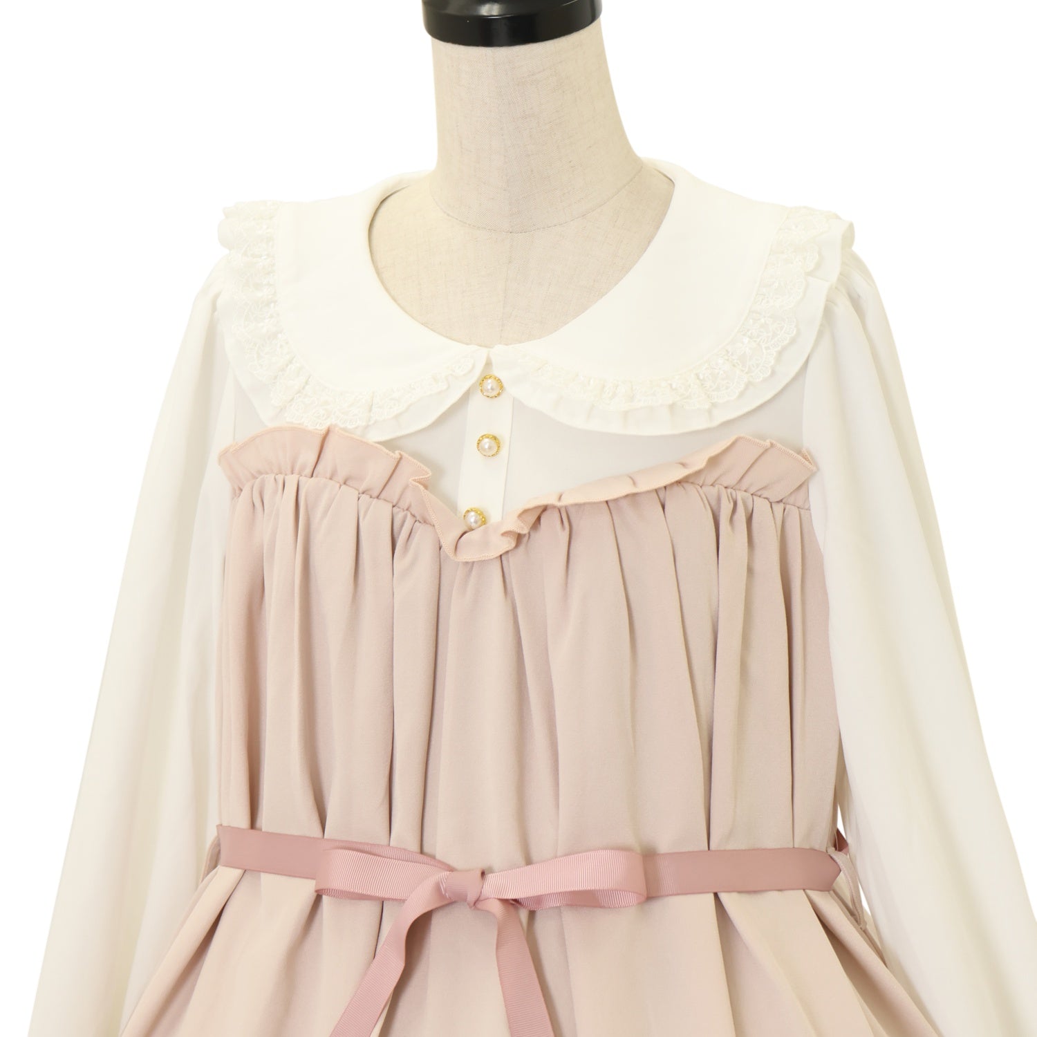 胸元リボンブローチ欠品 襟ぐり内側に若干の黄ばみ |