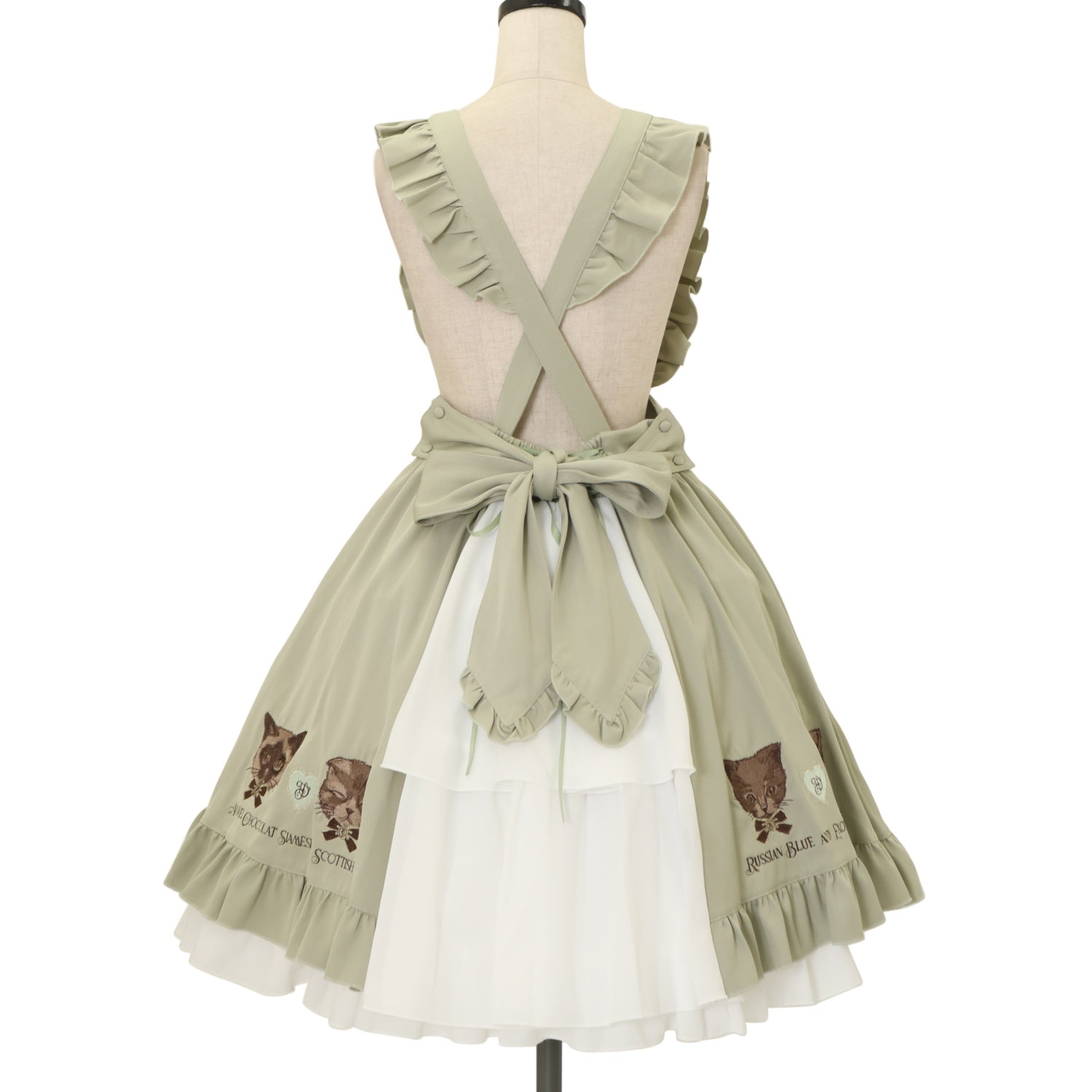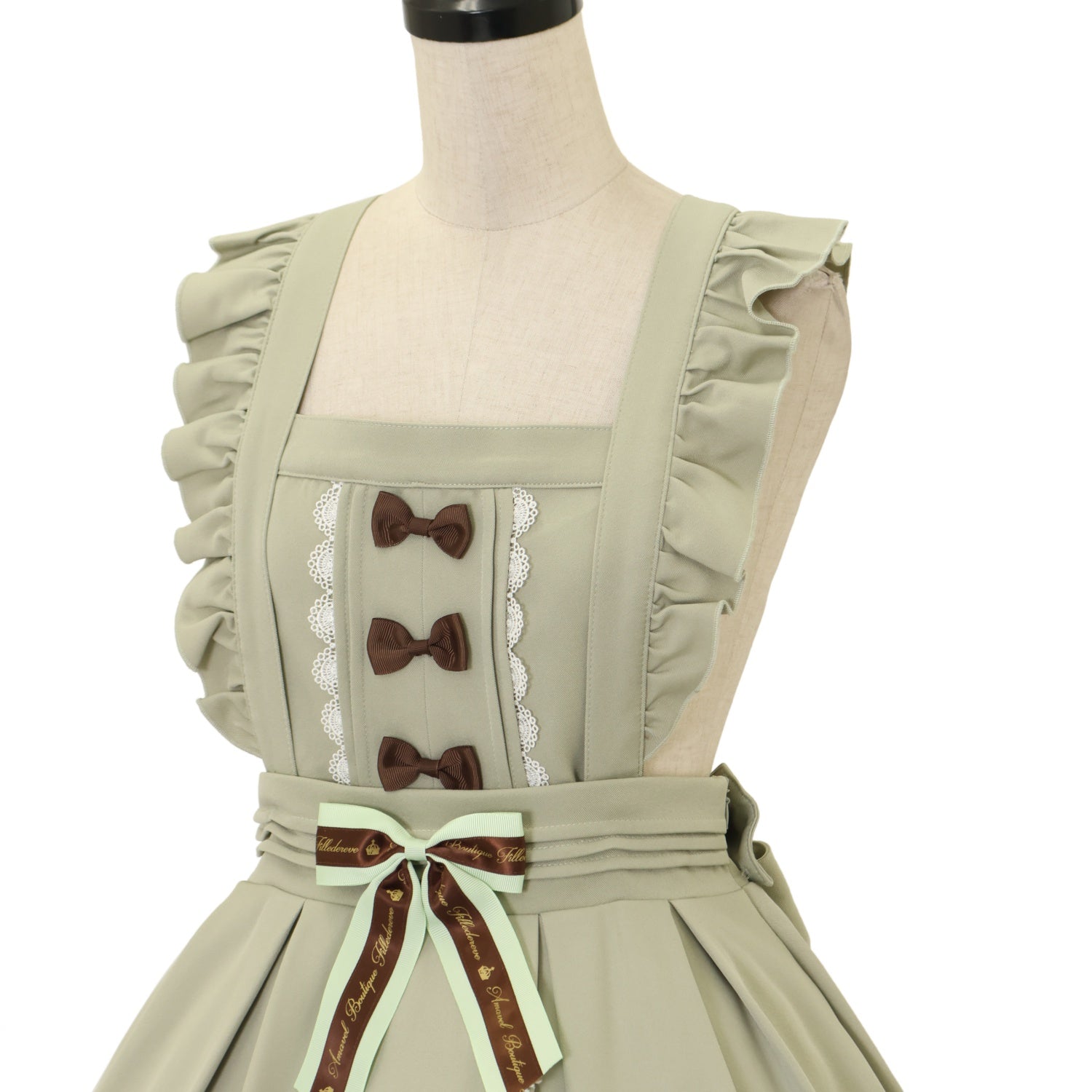 肩紐3段階調節・取り外し可能 胸当て・ウエストリボンブローチ取り外し可能 編み上げリボンで調節可能 |