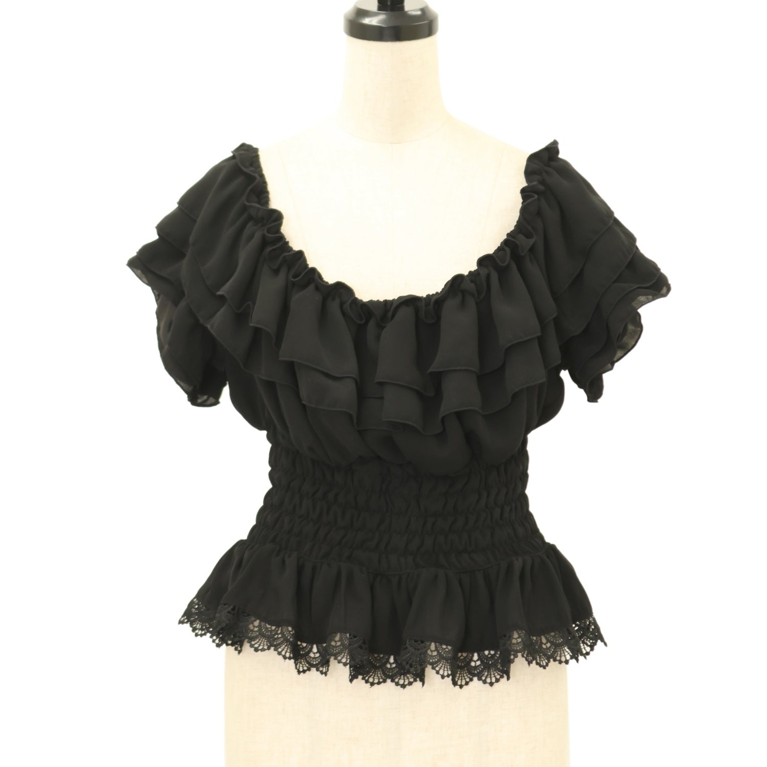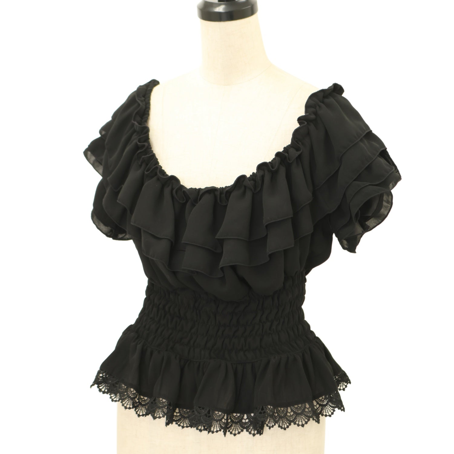 【USED】【Mサイズ】シャーリングフリルブラウス