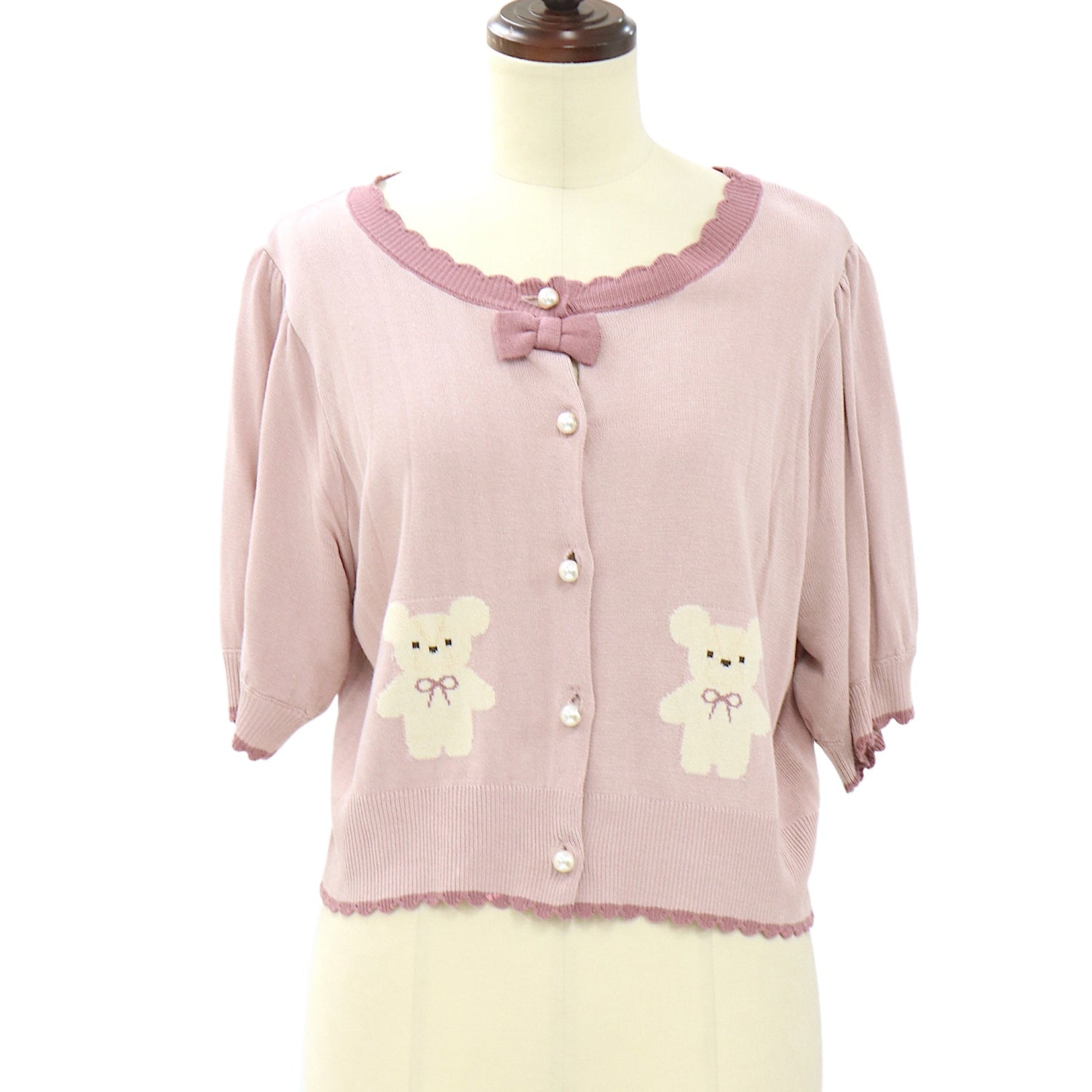【USED】【axes femme kawaii/Mサイズ】クマ柄半袖ニットカーデ