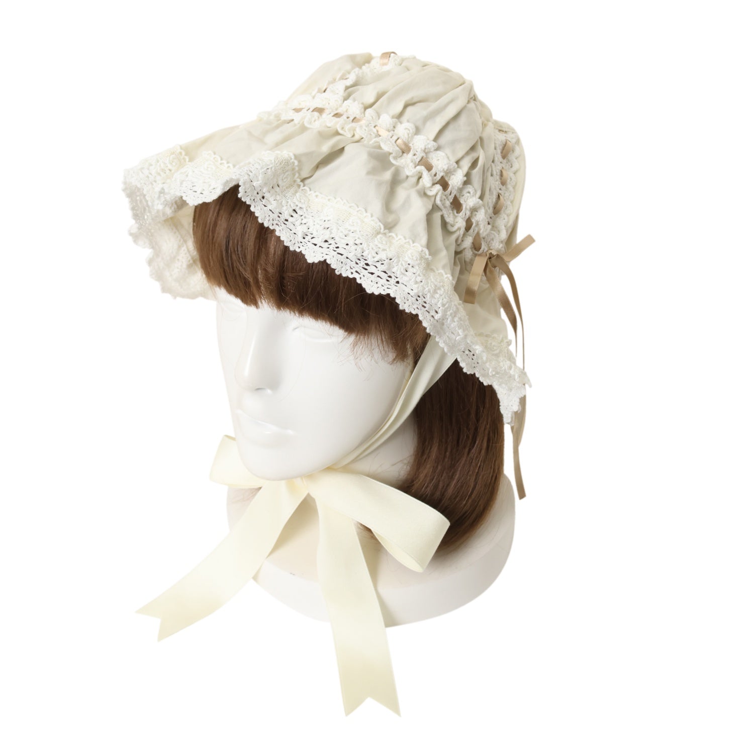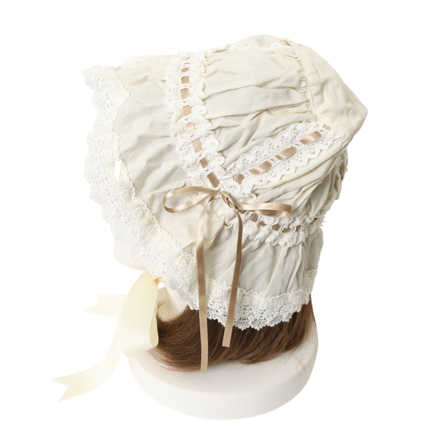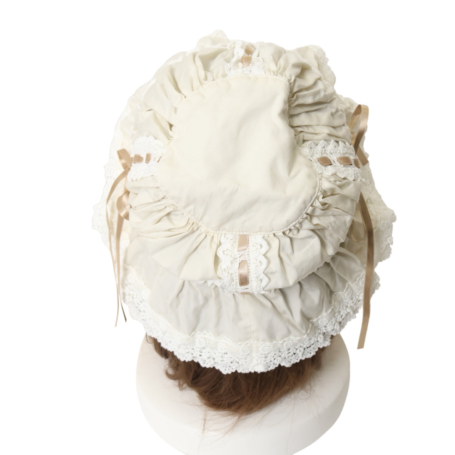 【USED】フリルメイドキャップ(生成り×ゴールドベージュ)