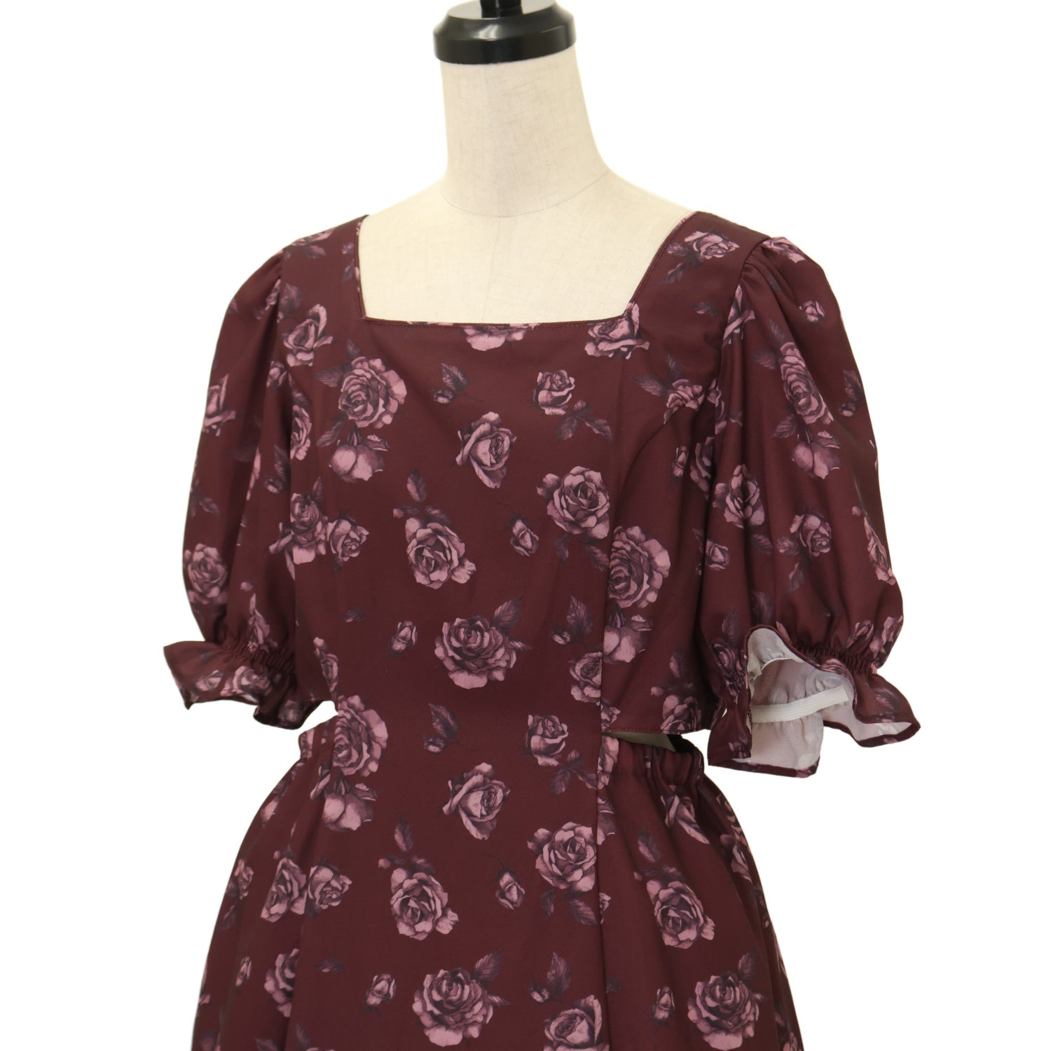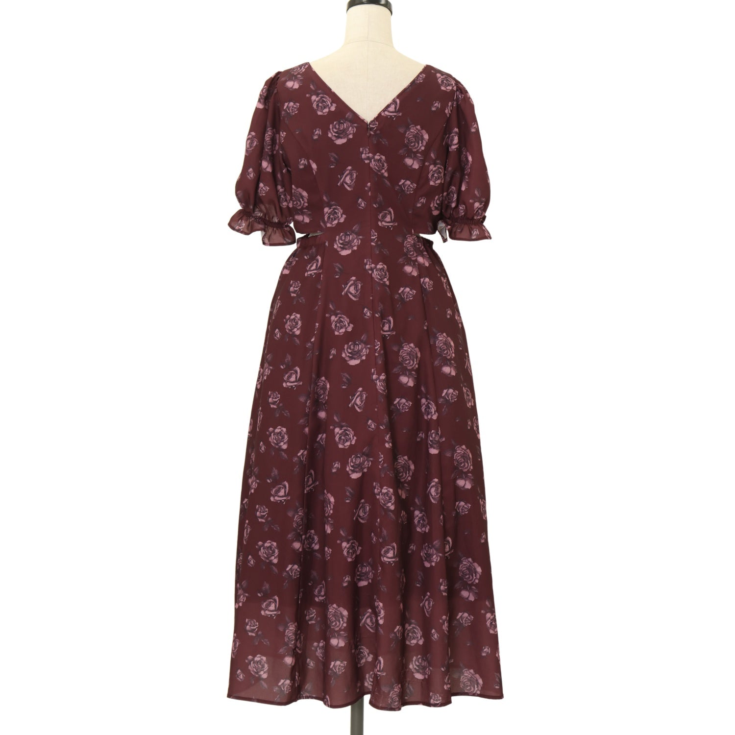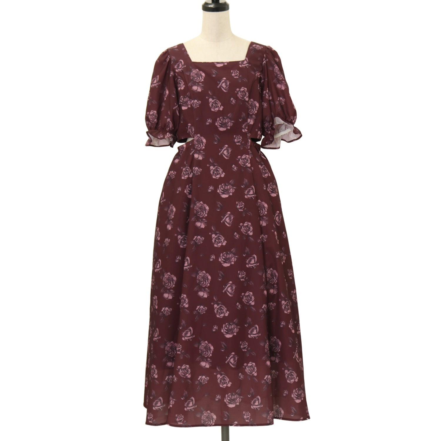 【USED】【Sサイズ】ローズフラワープリントワンピース(バーガンディー)