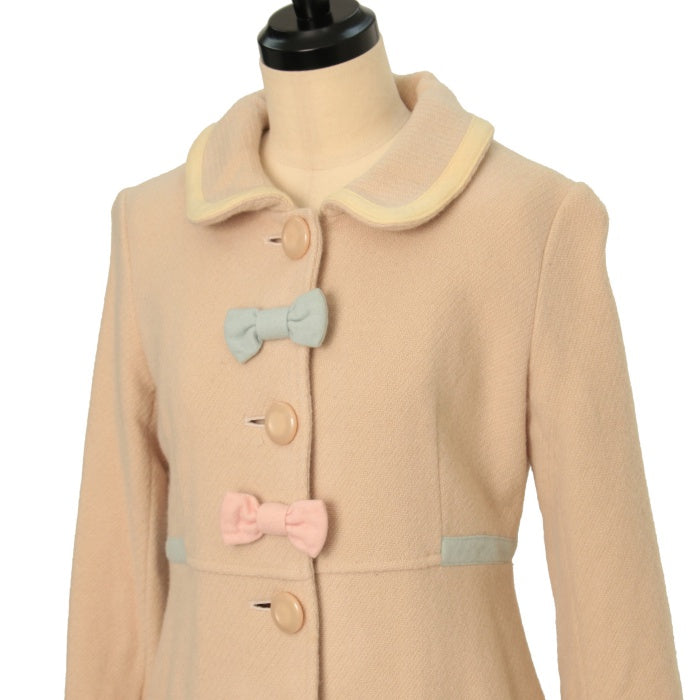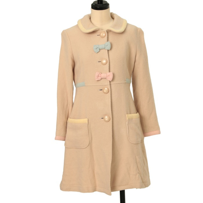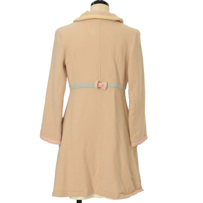 | 产品详情 | 没有尺码标记 肩宽:36cm 总长:84cm 胸围:43cm 袖长:55cm 腰围:39.5cm 毛:85% ナイロン:10% アンゴラ:5% ポリエステル:100% 使用感あり 右裾にヨレあり 表地の縮みによる裏地の露出あり 胸元/右肩部分に引っ掛け跡あり |