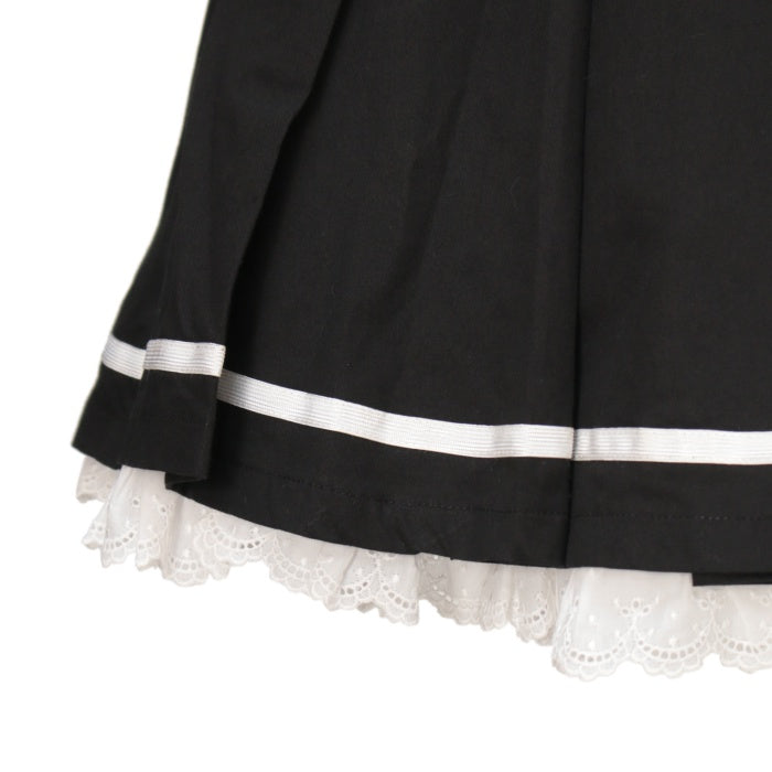产品详情 | 没有尺码标记 总长:42cm 腰围:37cm 綿:100% ポリエステル:100% 使用感あり 腰围リボンブローチ欠品 スカート後面左サイドにの裾レースに黄色い汚れあり シワあり 若干の繊維の付着あり サイズその他:内側ゴムで腰围サイズ調整可能 |