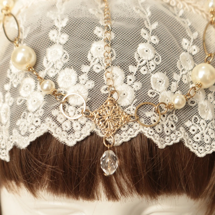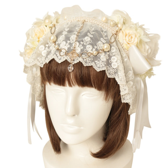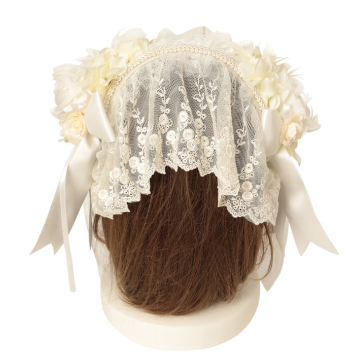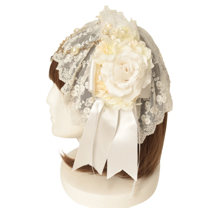 【USED】バラコサージュレースベールヘッドドレスカチューシャ
