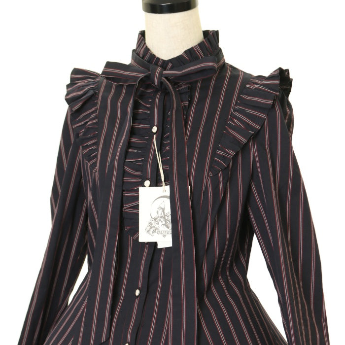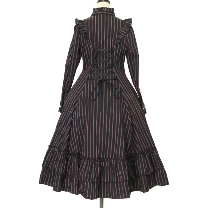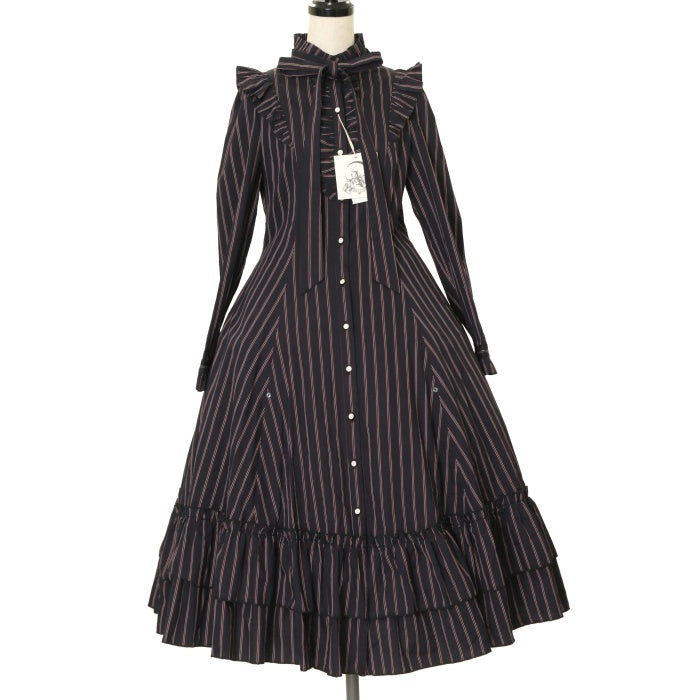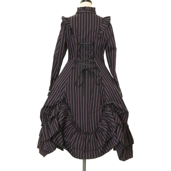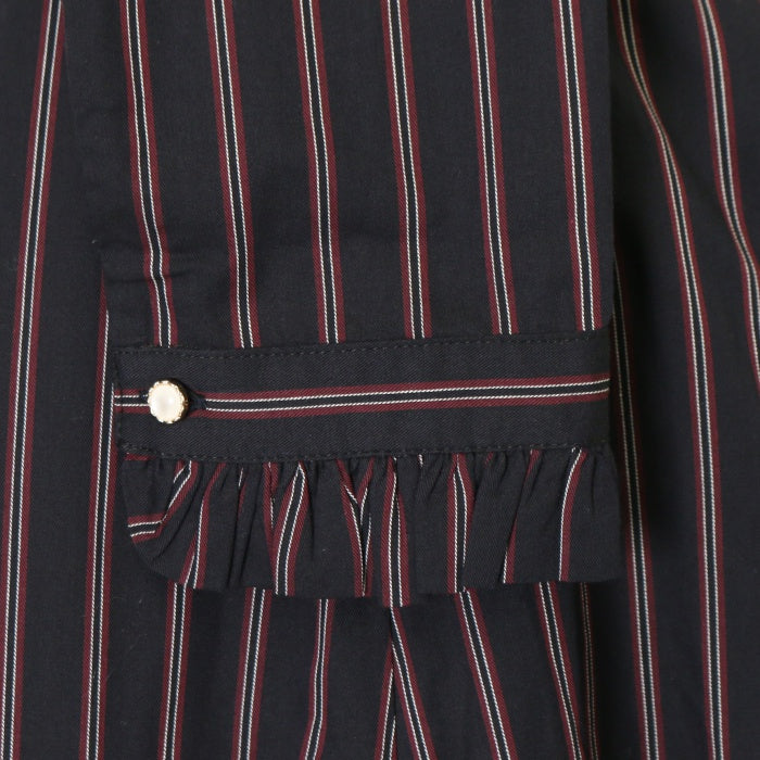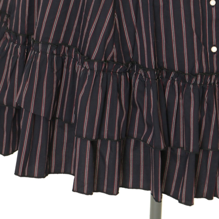 【USED】【Sサイズ】「八十日間世界一周」シャツワンピース(ロング丈/ブラック×レッドストライプ)